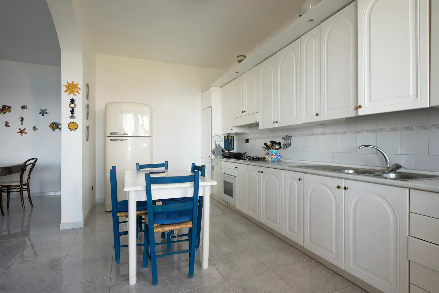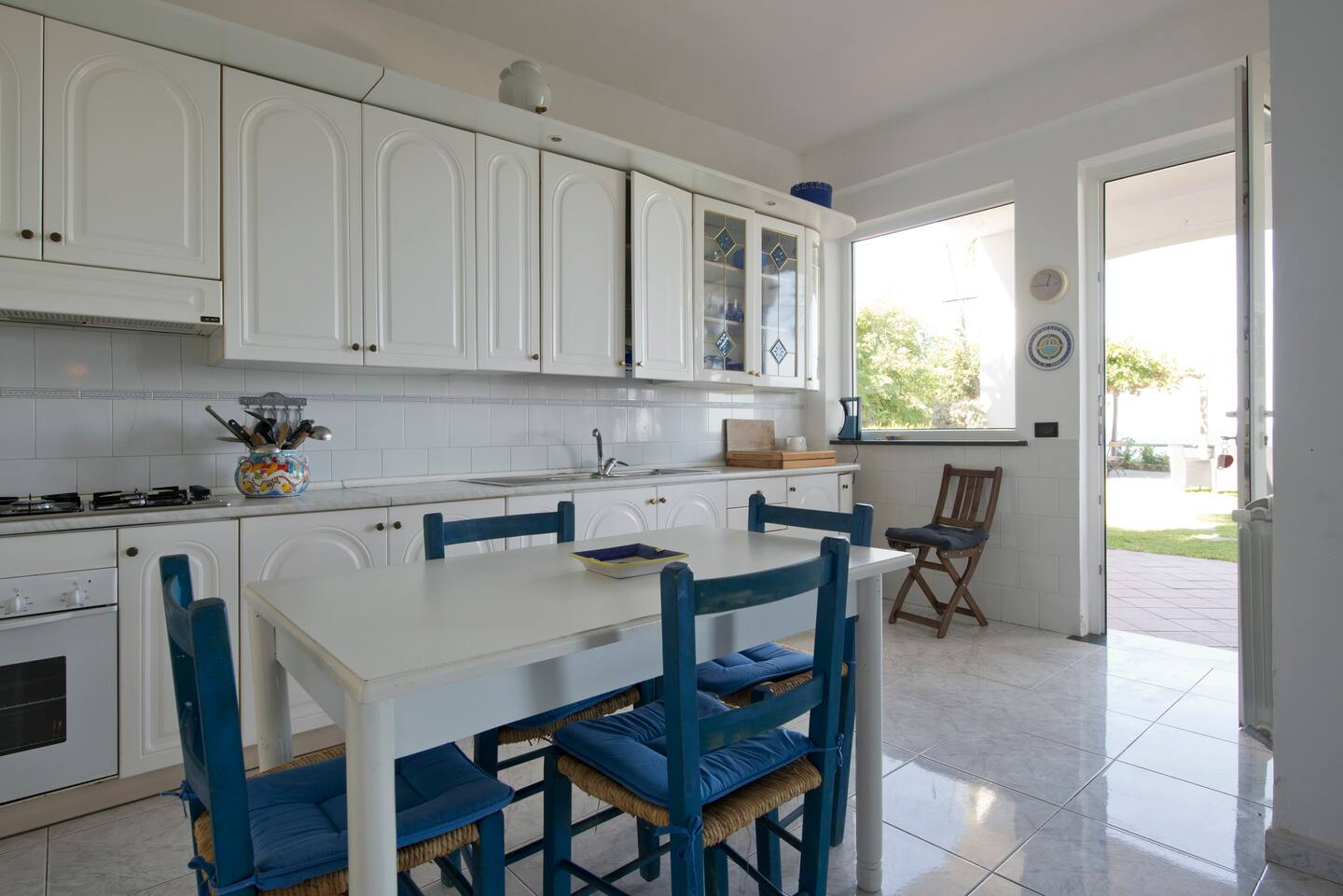 Ogni camera doppia - recentemente rinnovata - ha il suo bagno e ingresso indipendente. La villa può ospitare fino a 12 persone e viene fittata intera. Lo stile è mediterraneo, luminoso, pratico. Pulizie e cambio biancheria vengono effettuati a fine settimana e sono compresi nel prezzo. Si può eventualmente richiedere una pulizia o un cambio extra, a €10.00 l'ora.