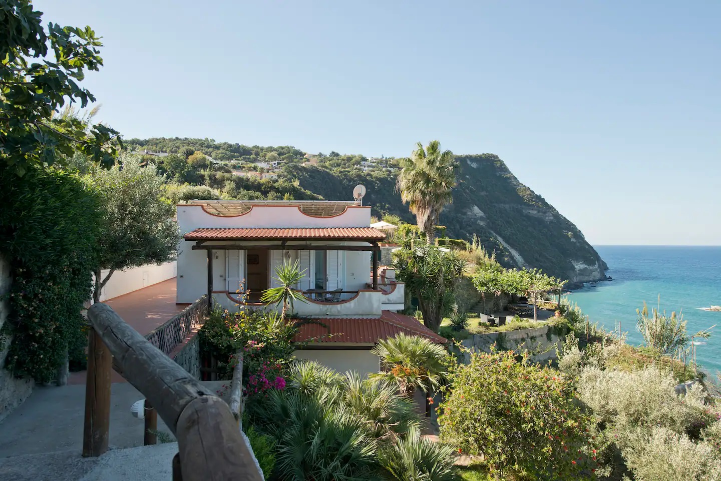 Affacciata sulla baia di Citara, a Forio d'Ischia, la Dimora di Zoè è una villa su due piani, panoramica, a strapiombo sui Giardini Poseidon, circondata da un terrazzo in cotto e un giardino. Lo sguardo spazia dal faro di Punta Imperatore alla Chiesetta del Soccorso: di fronte solo mare fino a Ventotene. La villa è strutturata su due livelli indipendenti. Dal piano terra al primo piano si accede con pochi gradini solo dall'esterno, sia a destra che a sinistra della costruzione.